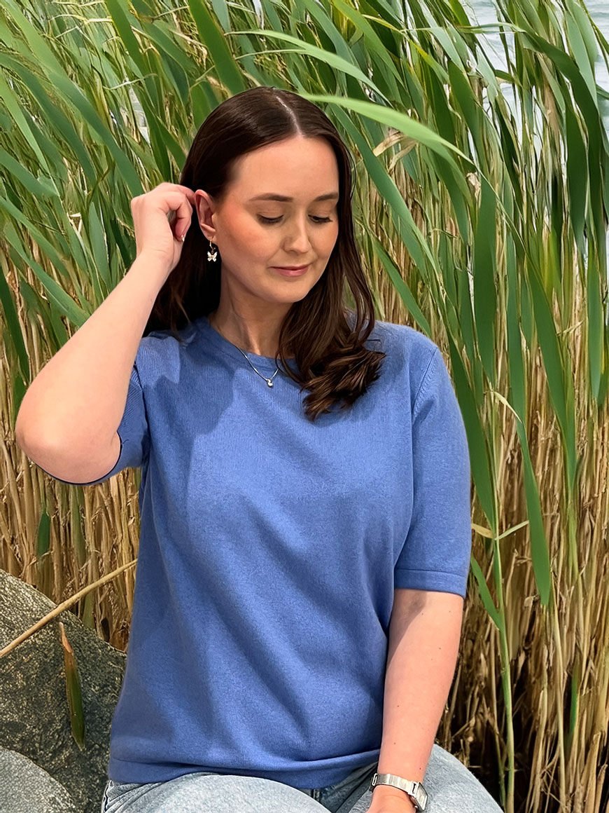Oppdag vår eksklusive t-skjorte i kashmir – laget av en luksuriøs blanding med 90 % kashmir og 10 % ull. Denne t-skjorten har samme høye kvalitet som våre populære Ella- og Hedda-modeller, og gir deg en perfekt kombinasjon av komfort, varme og stil.