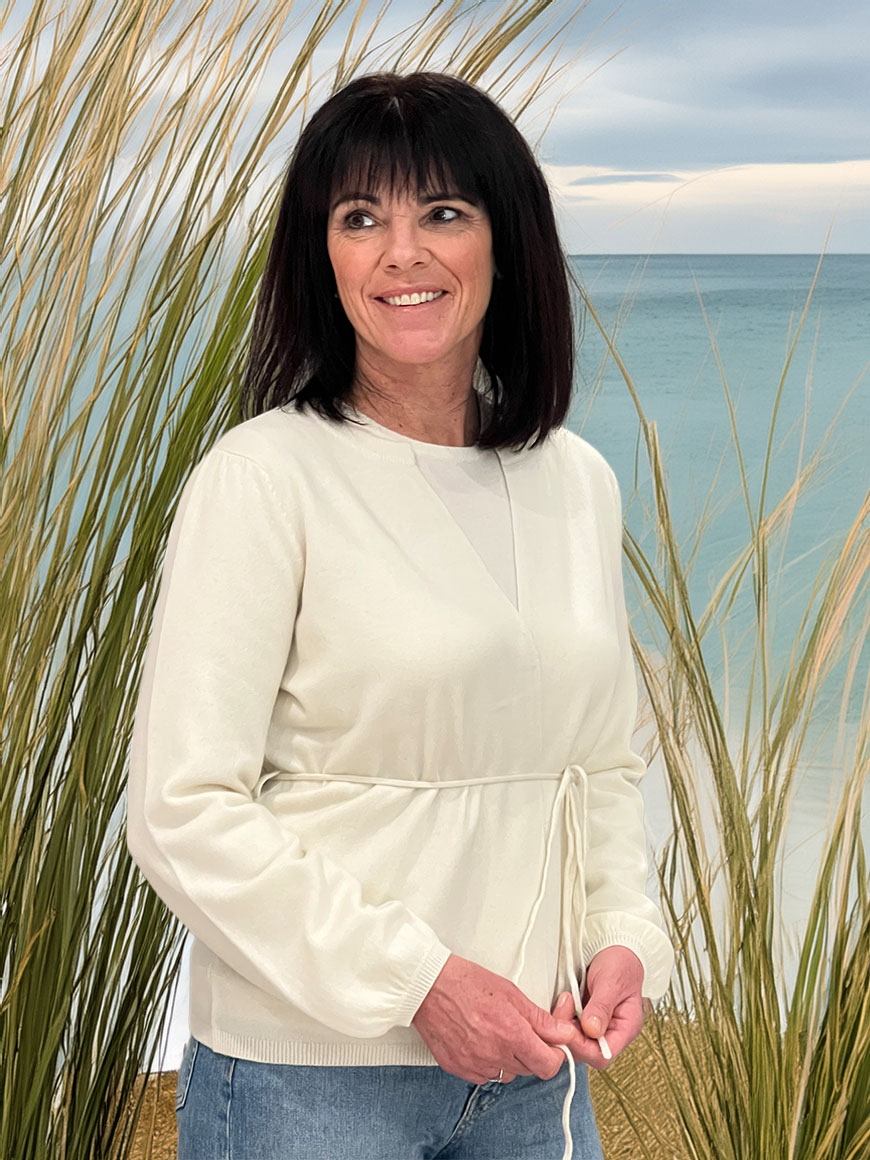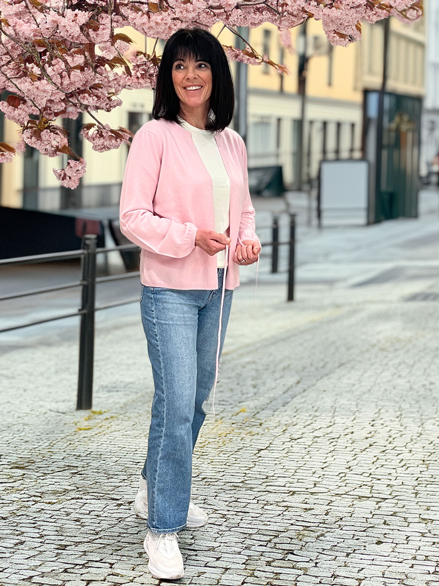 Cardiganen har delikate detaljer ved håndledd og skuldre, som gir plagget et eksklusivt og gjennomført uttrykk. Tilgjengelig i to tidløse farger – et must-have i enhver garderobe.