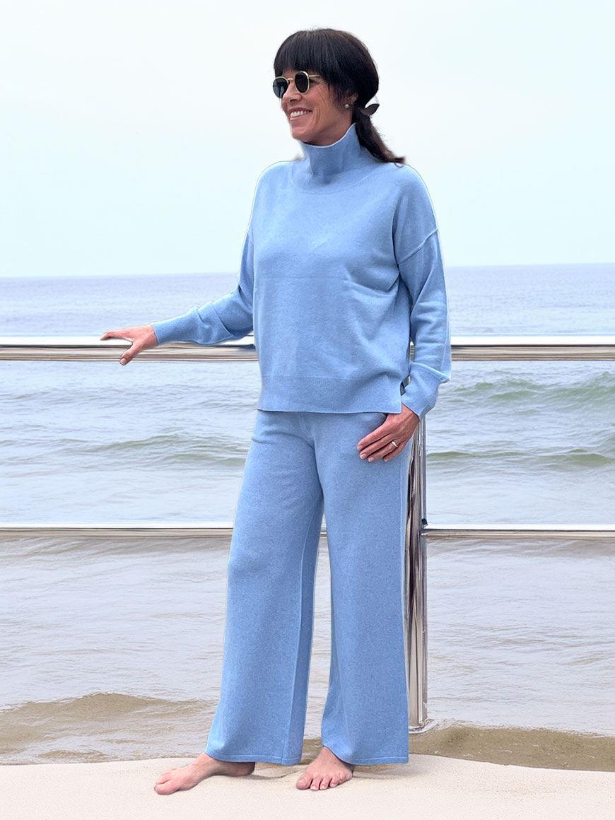 Opplev tidløs eleganse og komfort med vår klassiske one-size genser i 90 % kashmir og 10% ull. Denne myke og luksuriøse genseren har en halvhøy, løs hals som enkelt kan brettes ned for en lavere passform. Perfekt for enhver anledning – enten du ønsker en avslappet hverdagsstil eller en sofistikert look.