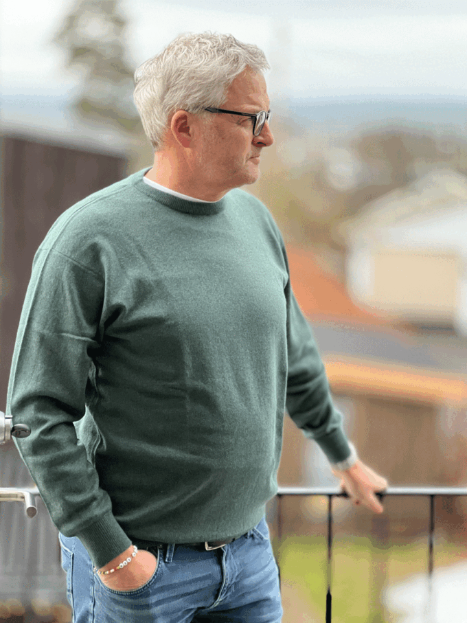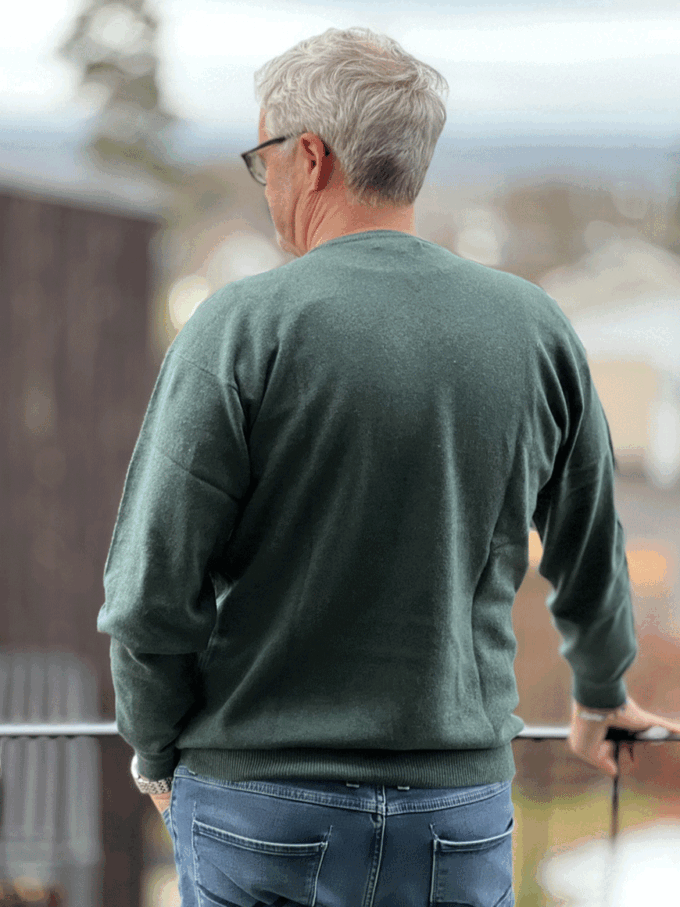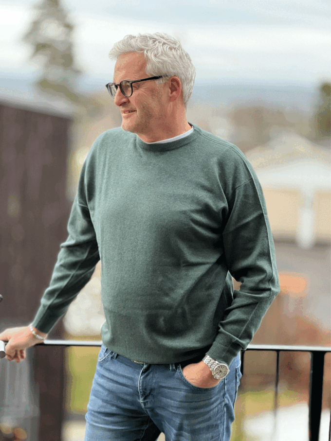 Denne tidløse kashmirgenseren med rund hals er like populær blant menn som kvinner. Laget av myk og eksklusiv kashmir gir den en luksuriøs følelse og elegant stil. Perfekt å bruke alene eller over en T-skjorte eller skjorte for et sofistikert uttrykk.