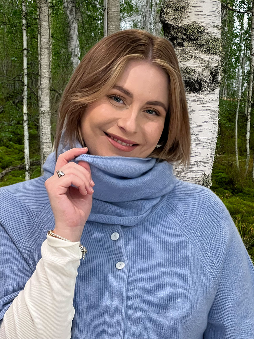 En myk og lett hals i ren kashmir, strikket i en løsere og florlett kvalitet sammenlignet med våre klassiske skjerf. Det tubulære designet gir en behagelig passform og et elegant fall rundt halsen.