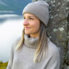 Ribbestrikket Lue med Raus Oppbrett i 100% Kashmir